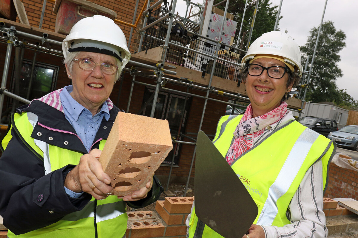 Norwich City Council deputy leader and portfolio holder for social housing Cllr Gail Harris joined Norwich Housing Society chairman Carol Sangster in laying the ‘Golden Brick’ at Leander Court, off Bluebell Road – the first milestone to be reached in the Scheme’s development.