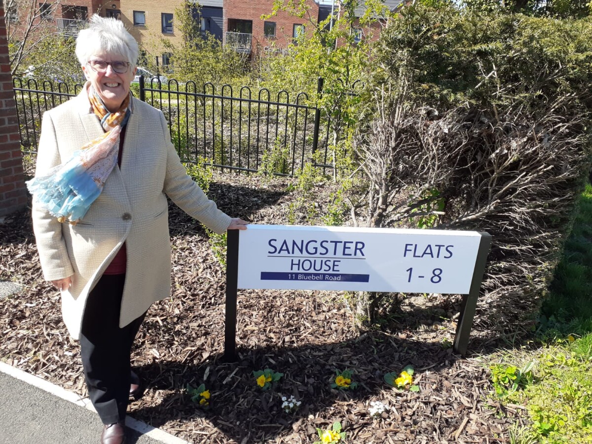 The new scheme was opened on 19th April by Carol Sangster and Jon Boon, former Chairs of Norwich Housing Society’s Board and has been named Sangster House to recognise Carol Sangster’s long and distinguished service to the Society. The name had been kept a secret from Carol until the unveiling on the day.